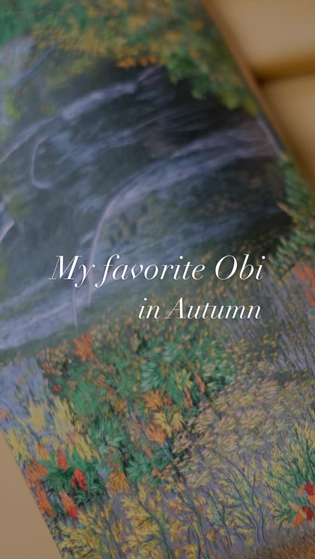 a waterfall and maple leaves delicately embroidered with the Bushin technique.